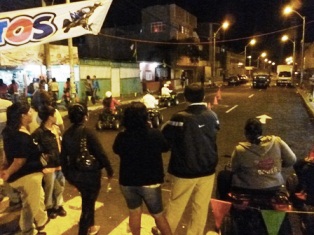 Chimbotenlinea.com (Redacción central) El comercio ambulatorio, que fue permitido por la Municipalidad Provincial del Santa en las primeras cuadras de la avenida Pardo, se extendió abusivamente por las calles aledañas. Anoche captamos la imagen de la invasión de varios metros de la segunda cuadra del jirón Carlos de los Heros para la instalación de un circuito de cuatrimotos. Tal como lo describe la fotografía, este servicio ambulante colocó banderines de poste a poste, un gran letrero idenficatorio y hasta conos fosforescentes para delimitar el circuito; que tenía un costo de S/. 5.00