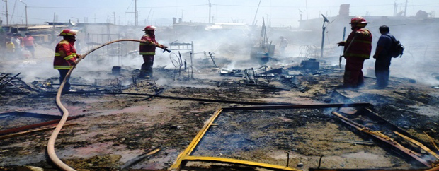 Chimbotenlinea.com (Por Cintia Cabrera).-Un voraz incendio dejó sin vivienda a cuatro familias de escasos recursos económicos en el asentamiento humano Las Américas, en Nuevo Chimbote. Al parecer la chispa de una cocina a leña causó la propagación de la llamas al material inflamable de las rústicas casas de esteras. Una bebé de 10 meses y su hermana de 4 años fue rescatada a duras penas por su madre.