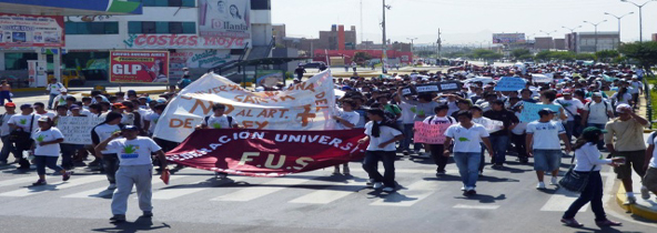 Chimbotenlinea.com (Por: Cintia Cabrera).- Nuevamente los estudiantes de la Universidad Nacional del Santa (UNS) toman las calles y esta vez en mayor proporción. Los docentes de esta Casa Superior de Estudios acatan desde hoy una paralización de 48 horas en reclamo a la derogatoria de la Ley 29914, la cual consideran nociva para sus intereses laborales.