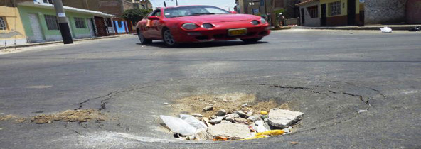 Por presuntas deficiencias en la construcción de pistas durante la gestión de la exalcaldesa Victoria Espinoza, los vecinos del pueblo joven La Libertad denunciaron que vienen siendo afectados con el hundimiento de estas vías, producto de las obras mal ejecutadas, ya que las filtraciones de agua contribuyeron a deteriorar el lugar desde hace más de dos años.(Texto y fotos Milton Palpa)