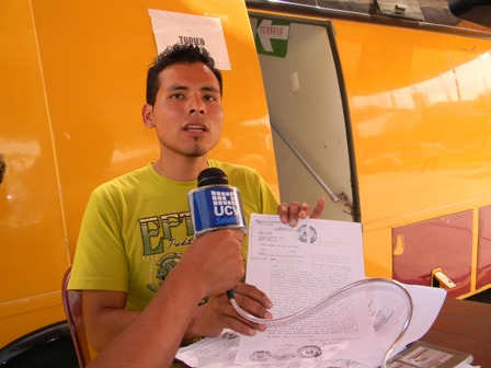 Del 23 de mayo al 2 de junio trabajó este joven de 8 de la mañana a 1 de la madrugada, cumplió con la asignación encargada, pero no cumplieron con él. Debieron haberle pagado 70 nuevos soles diarios, pero solo le dieron una parte. Le deben 400 soles y nadie le da la cara.