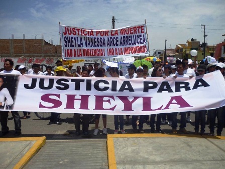 Psicología, para luego dirigirse hasta al local del Ministerio Público en el distrito donde se detuvieron para pedir a una sola voz justicia para a joven asesinada.Después se dirigieron a la plaza mayor del distrito donde la familia Arce Arrelucea, le pidió al alcalde Francisco Gasco Barreto que implemente un plan de seguridad para que un hecho tan lamentable como el asesinato de Sheyla no se vuelva a repetir.