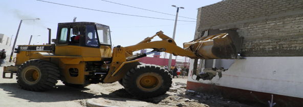 Con la ayuda de maquinaria pesada, personal de la Municipalidad Provincial del Santa dio cumplimiento a una resolución de ejecutoría coactiva que ordenaba demoler parte de tres inmuebles en “Antenor Orrego” que ocupaban la vía pública y que impedían la continuidad de la obra de pistas y veredas que se ejecuta en este pueblo.(Texto y foto Lindberg Cruzado)