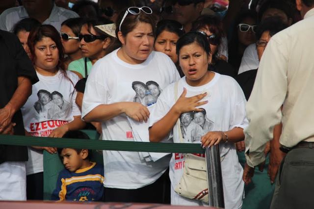 La viuda de Nolasco, Martha Blas Gonzales, se abrazó a sus hijas y alzó sus ojos al cielo pidiendo ayuda. No soportó verlas llorando en el funeral de su esposo y rompió en llanto.