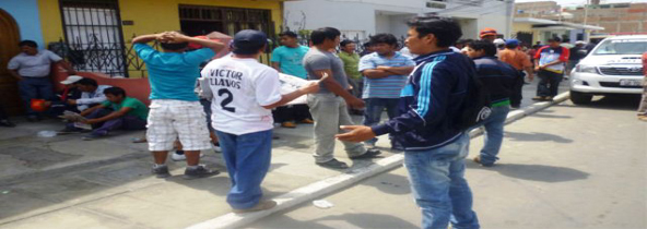 Otra obra paralizada. Más de doscientos trabajadores que ejecutan las obras del casco urbano y pueblos jóvenes de Chimbote, protestaron esta mañana exigiendo sus pagos de los meses atrasados y amenazaron que paralizaron sus labores debido a que la empresa que los contrató incumplió en pagar sus jornales. (Texto y foto Milton Palpa)