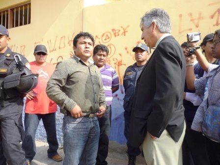 El fiscal de la Segunda Fiscalía Penal Corporativa de Nuevo Chimbote, Undorico Bojórquez Padilla para levantar un acta de constatación donde conminó a ambas partes al dialogo y a deponer sus actitudes de violencia.
