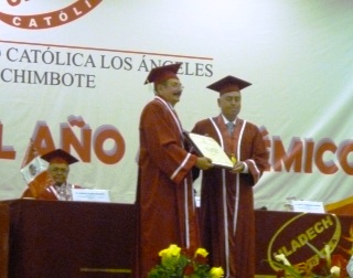 Chimbotenlinea.com (Redacción central) El rector de la ULADECH-Católica, Julio Domínguez Granda, aseguró que la universidad viene cumpliendo con los diversos stándares de calidad que ahora se le exige a los centros de estudios de nivel superior y potenciando, cada vez más, las nuevas tecnologías.Domínguez Granda se dirigió al auditorio congregado, ayer, para la ceremonia de apertura del año académico 2012; acto que estuvo presidido por el gran canciller de dicha universidad, Monseñor Ángel Francisco Simón Piorno.