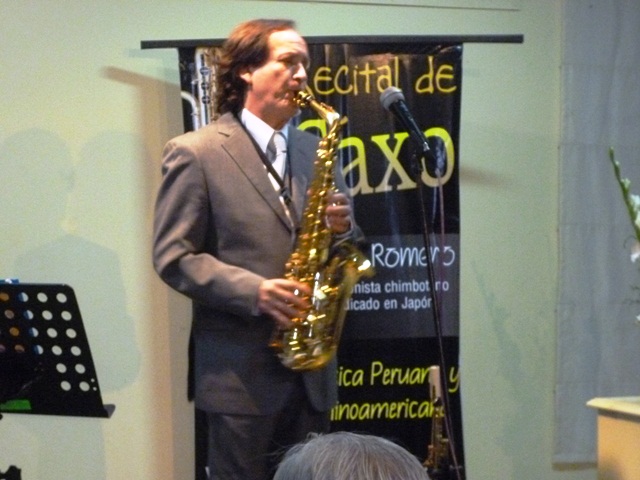 Chimbotenlinea.com(Redacción Central).- La noche del viernes, el Centro Cultural Centenario, recibió a más de un centenar de personas que se congregaron para presenciar en vivo el primer recital de saxo ofrecido en nuestra ciudad. Lo singular es que se trató de un talentoso músico chimbotano, ahora radicado en Japón, que deleitó con sus interpretaciones y se ganó el corazón del público asistente por su sencillez y calidez humana.