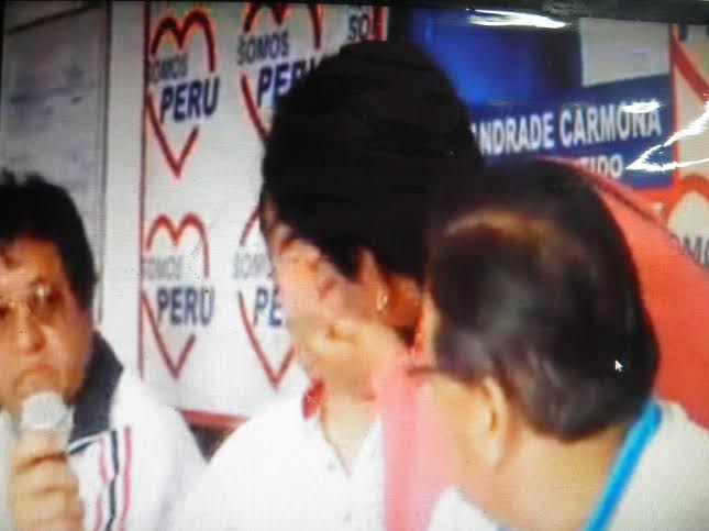Hasta ese momento todo se manejaba con tranquilidad, sin embargo cuando el candidato Juan Carlos Morillo, daba a conocer sus propuestas para el Gobierno Regional, ingresó raudamente una robusta mujer, quien lo abrazó dándole besos en la mejilla y cerca de la boca.