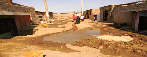 Chimbotenlinea (Por: Lindberg Cruzado).- El morador Luis Reynaldo Araujo Gutiérrez vio cómo su modesta vivienda de adobe, ubicada en la manzana J lote B2 del pueblo joven Primavera baja, se vino abajo por la inundación de aguas servidas.