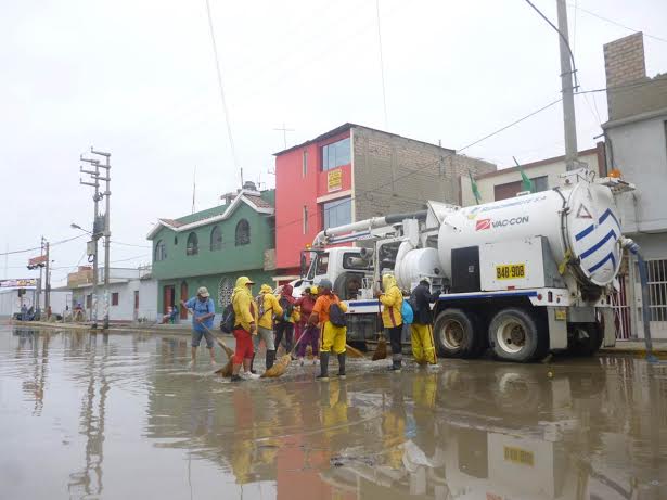 Al promediar las 9.30 a.m. llegó personal de Sedachimbote para discurrir el agua que se había empozado. A su par representantes de Defensa Civil Provincial se apersonaron para prestar el apoyo