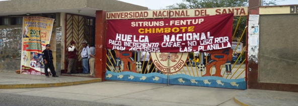 Chimbotenlinea.com (Por: Cintia Cabrera).- Crecen protestas contra el gobierno central. A partir de hoy los trabajadores administrativos de la Universidad Nacional del Santa (UNS) acatarán la huelga indefinida en demanda del incremento de incentivos del Comité de Administración de Fondos de Asistencia y Estímulos (Cafae), asimismo en rechazo a la ley 29914 que considera pagar el ascenso de docentes contratados con recursos directamente recaudados (RDR) por la UNS.