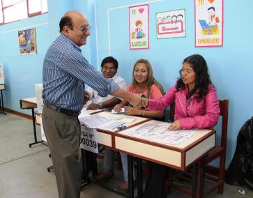 Foto 2.- El alcalde de Nepeña, Luis Alberto Collazos, en el momento en que termina de emitir su voto.Ésta autoridad también está siendo sometida al proceso de revocatoria.