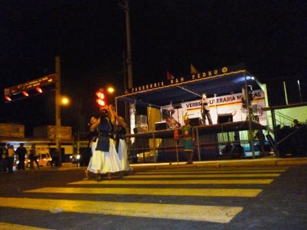 La verbena organizada en el atrio de la Parroquia San Pedro, presentó diversos números musicales, en donde los jóvenes realizaron un trabajo desinteresado, ya que querían demostrar que su formación profesional va acompañada del trabajo artístico, demostrando sus destrezas en el baile y canto.