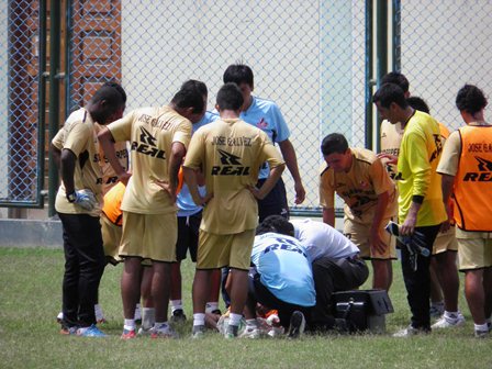 Chimbote en Línea (Deportes).- El volante Carlos Barrena quedó marginado para el partido del sábado en Chimbote ante Inti Gas. Esta mañana terminó con la frente rota en la práctica en el estadio municipal de Coishco. Saltó a cabecear la pelota pero impactó contra la cabeza de su compañero Ricardo Salcedo.
