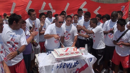 Barra "Los Leales" llevó una torta para que compartan después de los entrenamientos