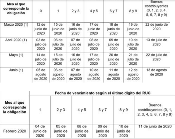 Esta nueva postergación evitará, además, que las declaraciones y pagos de las obligaciones mensuales de febrero, marzo y abril se concentren en junio, mes en el que también se inicia el vencimiento de la Declaración Jurada Anual del Impuesto a la Renta y del Impuesto a las Transacciones Financieras (ITF) correspondiente al año 2019.