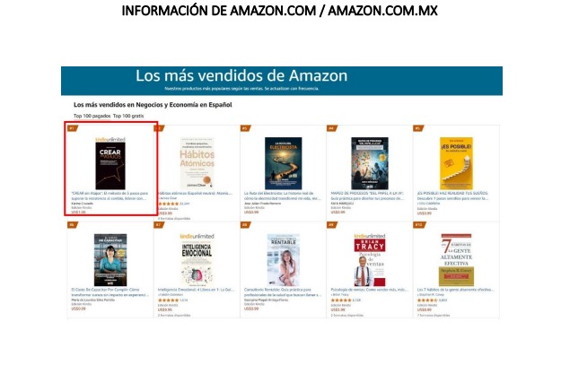 Chimbote en Línea.- Crear sin Atajos es el primer libro de la consultora peruana Karina Cruzado que se ha posicionado como Best Seller en Amazon.com, alcanzando simultáneamente el primer lugar en cuatro categorías internacionales: