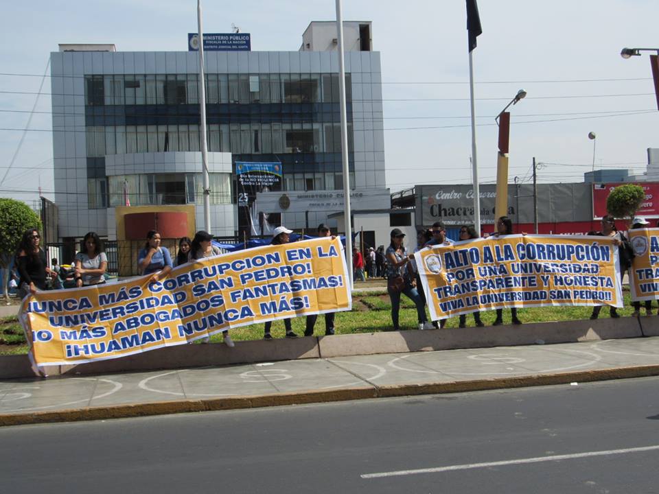 Mientras eso se ventilaba en la Sala, en los exteriores un grupo de estudiantes con pancartas y gigantografías en mano exigían al magistrado que acepte el pedido de la Fiscalía- según dijeron- para no seguir siendo afectados con el desconocimiento de la Sunedu en la obtención de sus grados y títulos.