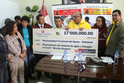 El alcalde de la provincia del Santa, Luis Arroyo Rojas, exhibió hoy el cheque simbólico de 17 millones de soles que ya están en las cuentas de su municipalidad para la ejecución de dicha obra.