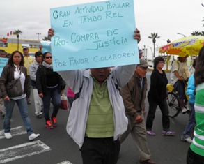 Chimbotenlinea.com (Por: Lindberg Cruzado).- Con carteles y pancartas en mano y lanzando arengas, medio centenar de vecinos de Tamborreal, llegaron esta mañana a Chimbote para efectuar una marcha de protesta en contra del funcionamiento de la empresa Seagro SAC, procesadora de marigold, porque presuntamente viene contaminando a la población.
