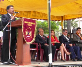 En su discurso, el secretario general Fidel Purizaca Alcántara hizo un llamado a las autoridades que se acuerden de su pueblo, sobretodo que construyan el enrocado.