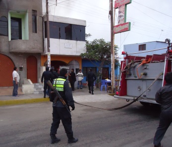 Efectivos policiales destacaron la rápida actuación de los bomberos, que impidieron que el fuego avance a los inmuebles de los costados.(Texto y fotos Lindberg Cruzado)