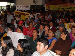 El alcalde Luis Arroyo Rojas se reunió esta mañana con sus funcionarios y dirigentes vecinales en el auditorio de la Universidad San Pedro para anunciar el lanzamiento de proyectos en pueblos como Esperanza Baja, San Miguel, Santa Clemencia, Ramal Playa, entre otros.