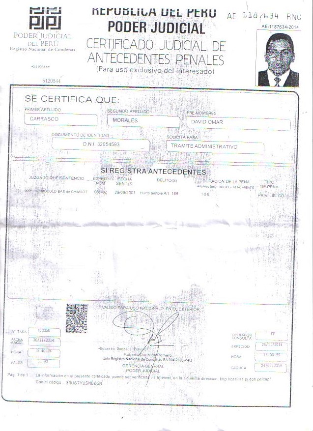 Asimismo el candidato que presidía la lista No 3, David Omar Carrasco Morales, quien también se disputa la titularidad del gremio, tiene una sentencia por hurto simple, dictaminado por el Módulo Básico de Chimbote.