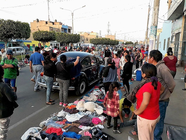 Chimbote en Línea. – Los comerciantes ambulantes de la “Cachina” vienen ocupando los domingos la vía pública en la avenida Buenos Aires del pueblo joven El Progreso en Chimbote. Y precisamente hoy con su mercadería en la vereda dificultaron el ingreso de un féretro a la Parroquia Señor de los Milagros.