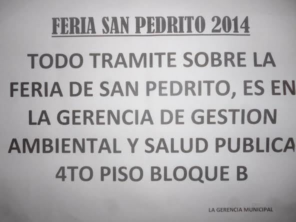 municipal; en el que indica que cualquier coordinación respecto a la Feria de San Pedrito, hacerla con la Gerencia de Gestión Ambiental y Salud pública, a cargo de la cuestionada funcionaria Lourdes Sandoval Rojas,; el regidor dijo desconocer esta situación.