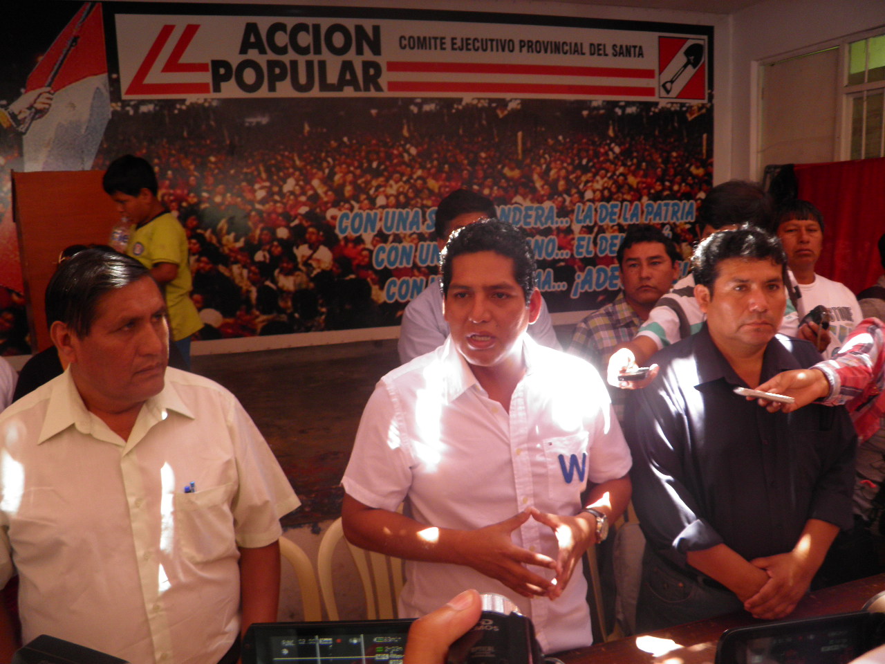 El enfrentamiento se registró en las afueras del local de Acción Popular en pleno centro de Chimbote, hasta donde los periodistas habían acudido tras una convocatoria para una conferencia de prensa de un sector del citado partido.