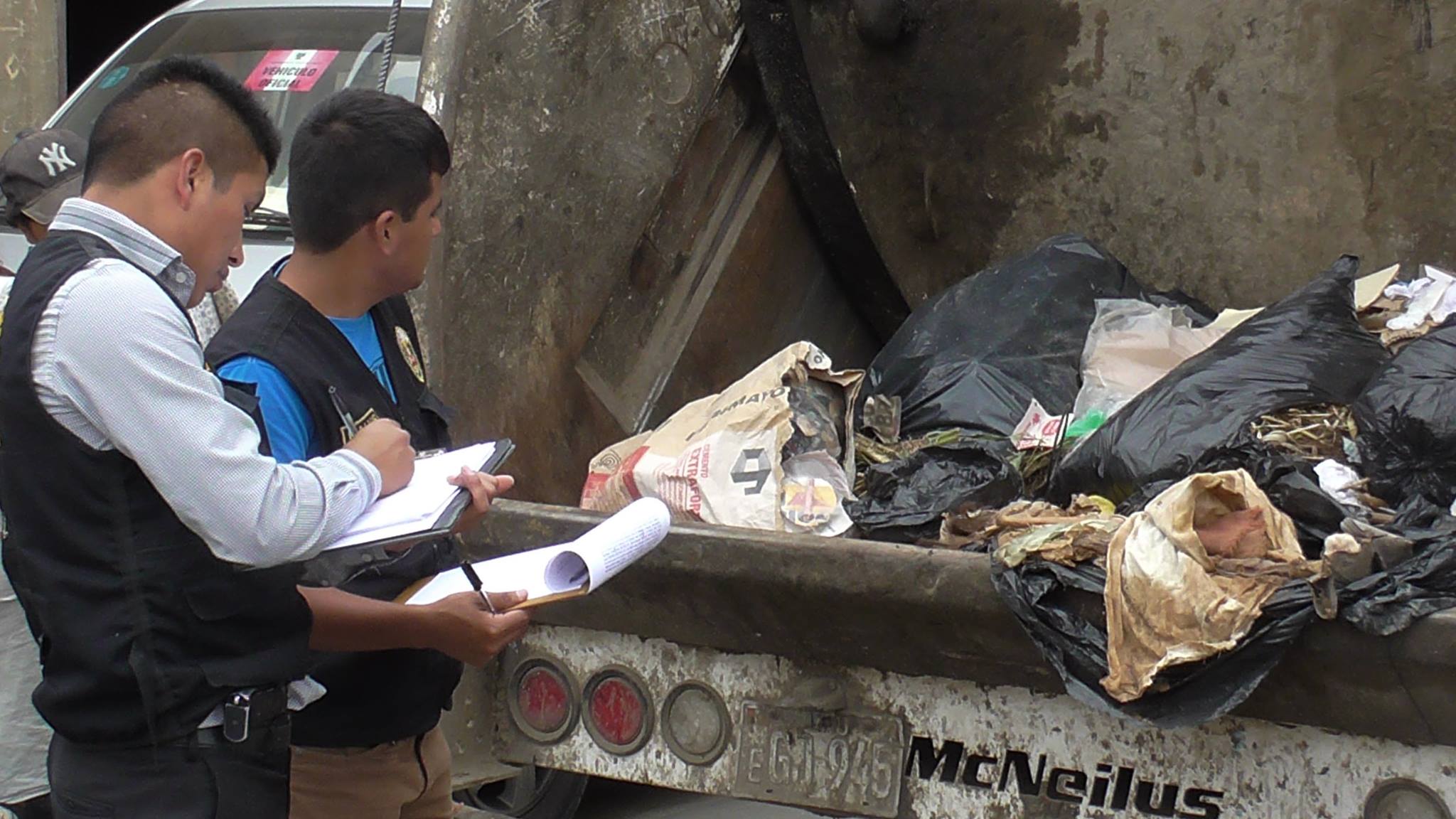 Esto motivó a que el chofer del camión de basura, Nilo Mejía Bermúdez (23), diera aviso a la Policía Nacional y agentes de Seguridad Ciudadana sobre el horrendo hallazgo. Hasta el lugar llegó personal del Instituto de Criminalística, Policía Especializada en esta materia y el fiscal de turno para las pericias e investigaciones del caso.