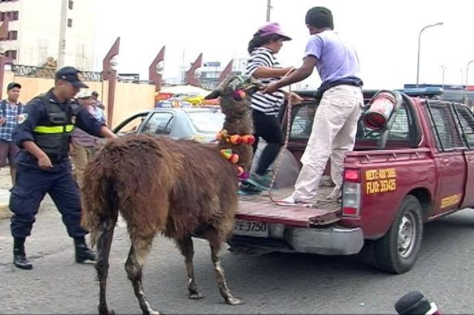 Chimbote en Línea (Locales).-Personal paramédico de Seguridad Ciudadana de la municipalidad de Chimbote brindó la ayuda oportuna a una llamita de 4 años llamada “Charo”, cuando estaba a punto de alumbrar a su cría en la Plaza 28 de Julio.