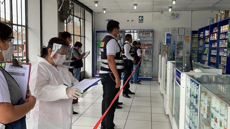 El trabajo se desarrolló con el apoyo de la Dirección General de Medicamentos, Insumos y Drogas (DIGEMID), la Fiscalía de Prevención del Delito y agentes de la Policía Fiscal, a fin de verificar si estos locales comercializan medicamentos con registro sanitario, vencidos y/o adulterados; además si cuentan con licencia de funcionamiento y certificado de Defensa Civil.