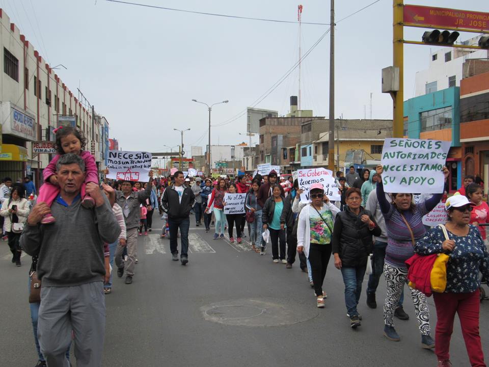 Desde tempranas horas de la mañana, los pobladores con gigantografías, carteles y cargando sus hijos recorrieron las diferentes arterias de la ciudad, a fin de que las autoridades no insistan en el pedio de la Superintendencia Nacional de Bienes Estatales (SBN) que el pasado mes de mayo, pidió a la gerencia del proyecto irrigador que recupere este espacio tierras invadidas.