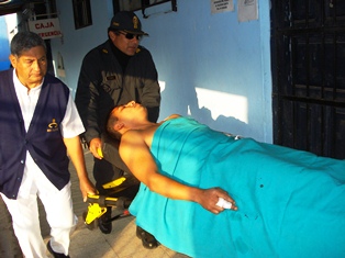 Chimbote en Línea (Policiales).- Un obrero que regresaba a su vivienda en el pueblo joven Alto Perú recibió un impacto de bala en la rodilla izquierda. Se trata de Miguel Rojas Meléndez de 27 años, quien se encuentra internado en el Hospital La Caleta.