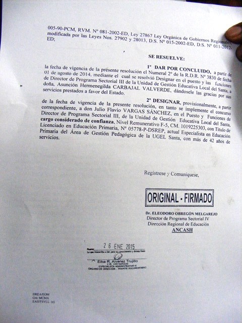 “Tengo en la gestión educativa más de 33 años y no tengo ningún proceso administrativo ni judicial por el que se me pueda cuestionar en el cargo que ahora me brindaron, solo deseo trabajar por el bien de la UGEL – Santa, el tiempo que dure mis funciones”, puntualizó, Vargas Sánchez.