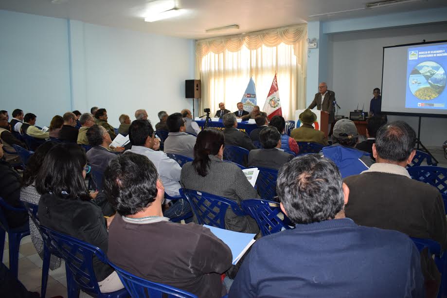 Chimbote en Línea.- (Ayer) En masiva participación de la sociedad civil, representantes de instituciones de defensa civil, ambiente, universitarios y el alcalde de Huaraz, el Instituto Nacional de Investigación de Glaciares y Ecosistema de Montaña (INAIGEM) informó sobre “La situación de riesgo en los glaciares y lagunas de la Cordillera Blanca” y presentó la “Revista de Glaciares y Ecosistemas de Montaña”.
