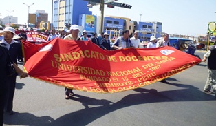 Los docentes se movilizaron desde el campus universitario por las principales arterias de Nuevo Chimbote acompañados por los trabajadores administrativos que mantienen su huelga indefinida en contra del gobierno central.
