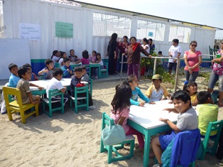 Chimbote en Línea (Nuevo Chimbote).- Los 180 niños del nivel inicial de la Institución Educativa N° 1685 ubicado en el asentamiento humano Villa Magisterial paralizaron hoy sus labores en protesta porque la Junta Vecinal ha desarmado algunas de sus aulas para reubicar el jardín y priorizar la construcción de un campo deportivo en la zona.