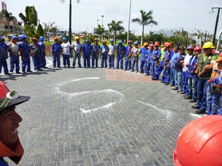 En esta ocasión, el grupo de obreros de construcción civil se organizó y acató el simulacro en un 100%, ellos abandonaron de emergencia sus labores en el edificio de Implementación del Nuevo Código Procesal Penal que se construye a un costado de la catedral.