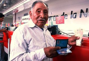 Unos 25 beneficiarios del programa estatal Pensión 65 en el distrito de Nuevo Chimbote, cobraron la mañana de ayer el bono de  S/. 250.00 que aporta el Estado,  correspondiente a los meses de setiembre y octubre.