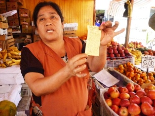 Esta mujer trabajadora mostró unos boletos amarillos “Recibos de SISA” donde cada vendedor que se ubica en un puesto paga 50 céntimos diarios, la mayoría paga 1 sol diario, que al mes resulta 300 soles multiplicado por 30 comerciantes informales que hay en el centro de abastos, representa una cantidad de 9, 000 soles mensuales de ingresos a la municipalidad distrital. Según Vejarano Bautista, son trabajadores de la Subgerencia de Comercialización, quienes hacen el cobro diariamente.