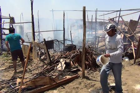 Chimbote en Línea (Nuevo Chimbote).- Tres humildes viviendas del asentamiento humano Libertad, en Nuevo Chimbote, fueron devoradas por un voraz incendio que se habría originado por un corto circuito.