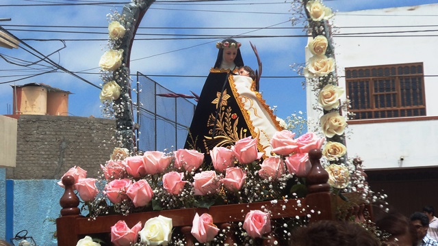 La imagen de Santa Rosa de Lima, patrona de la urbanización, recorrió desde las 11 a.m. las principales calles de esta localidad, acompañada de un numeroso grupo de vecinos y fieles devotos de la “santarrosita” como es llamada con cariño la santa patrona de América Latina y las Filipinas.