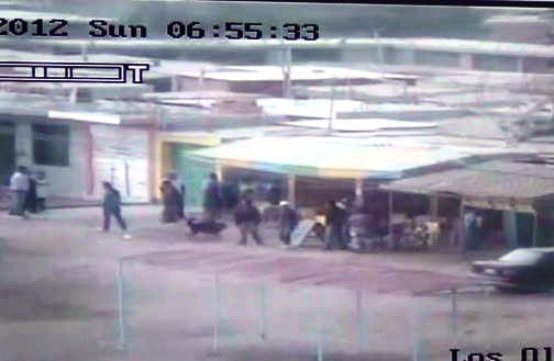 Ambos vehículos se encuentran en la avenida Central, en la esquina del centro de abastos, se estacionan juntos y luego de conversar unos segundos el auto al parecer color gris oscuro ingresa a la avenida Pacifico y se dirige hacia el puesto de comida, en donde descienden dos sujetos para asesinar a “Chanava” y luego salen del local y huyen a bordo del auto.