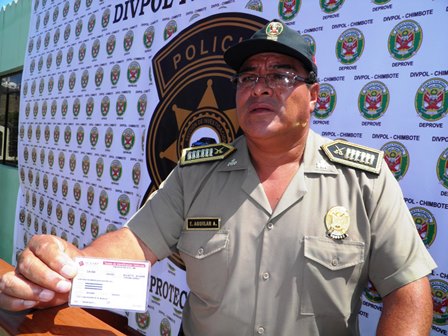 El coronel Aguilar señaló también que el otro vehículo que fue recuperado es un Nissan Sunny de placa BIJ 609 que fue robado en agosto del 2008 en Lima, pero que circulaba en Chimbote con una placa clonada y con una tarjeta de propiedad vehícular expedida también por la Sunarp.(Texto y fotos Lindberg Cruzado)