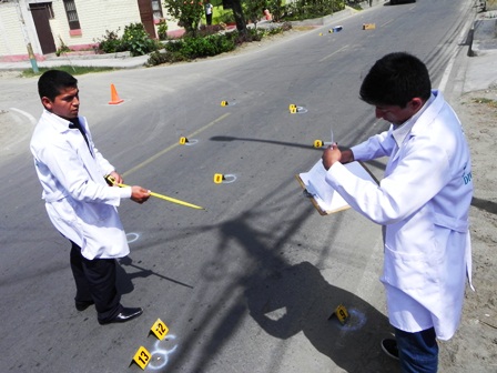 Hasta la escena del tiroteo llegaron policías de criminalística para levantar un informe de todas las evidencias. El vehículo station wagon tiene cinco orificios de bala, además en el lugar se encontraron 15 casquillos de bala.