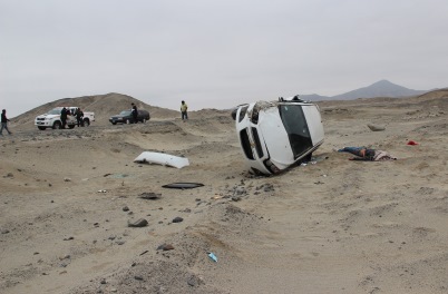 A las 9.30 a.m. llegaron al lugar del accidente los fiscales de Nepeña, Rosa Luz Castro y Richard Contreras, quienes ordenaron el levantamiento del cadáver y su traslado a la morgue de Chimbote para la necropsia de ley.